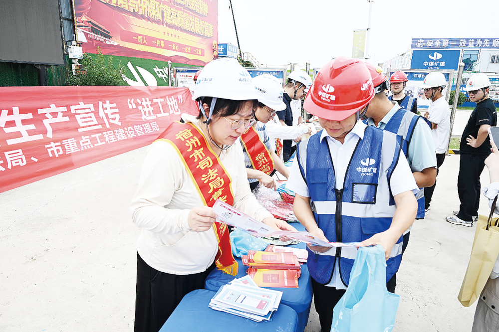 宿州市司法局联合市重点工程建设管理局开展安全生产宣传“进工地”活动。
