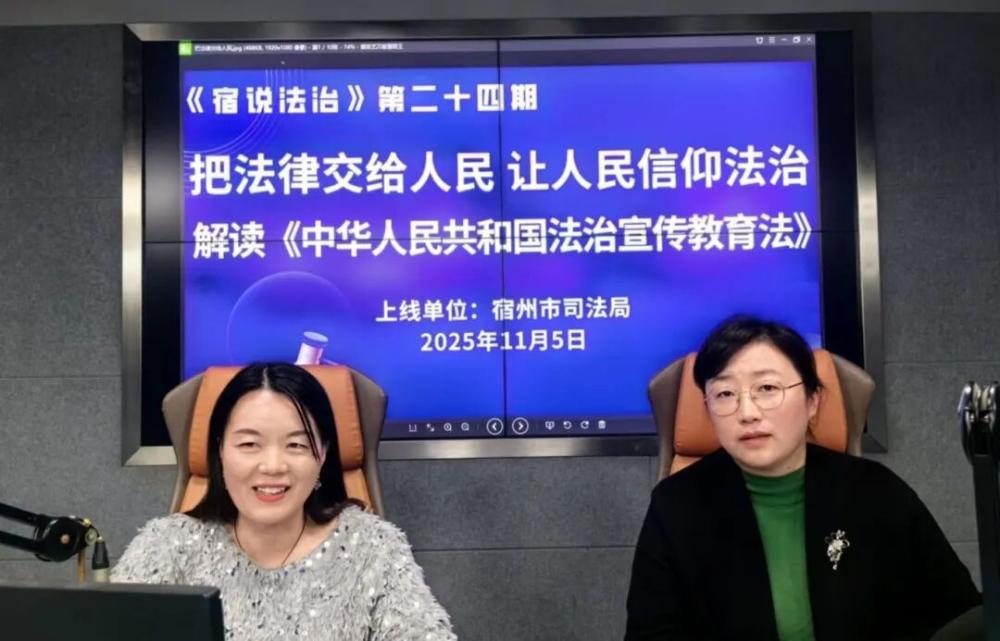 2025年以来,宿州市把学习宣传习近平法治思想作为全民普法的首要任务,压实普法责任、精准对接需求、拓展普法路径,以持续打造“宿说法治”普法品牌为抓手,扎实推进法治宣传教育重点任务落地见效,切实提升广大群众法治意识和法治素养,带动法治宿州建设整体水平不断攀升。