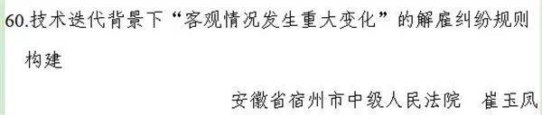 近日,最高人民法院发布全国法院第三十七届学术论文讨论会论文评选结果。宿州中院民三庭干警崔玉凤撰写的论文《技术迭代背景下“客观情况发生重大变化”的解雇纠纷规则构建》荣获征文三等奖。