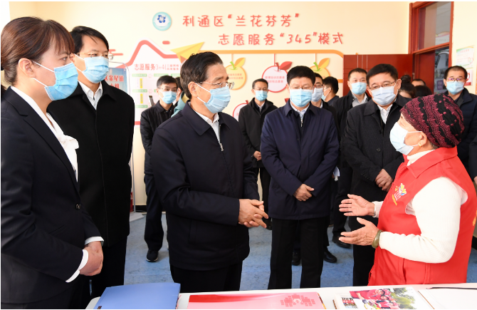 11月7至9日,中共中央政治局委员、中央政法委书记郭声琨在宁夏调研。图为郭声琨来到吴忠市利通区金花园社区调研。摄影?郝帆